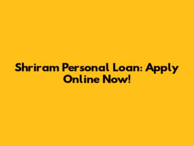 Shriram Personal Loan: Apply Online Now!