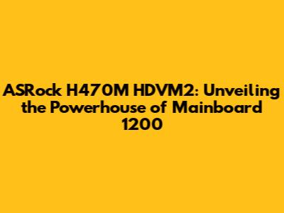 Hey there, tech enthusiasts! Today, we're diving deep into the ASRock H470M HDVM2, a mainboard designed to support Intel's 10th generation processors with the LGA 1200 socket. This little beast packs a punch, offering a solid foundation for your desktop build. We'll explore its features, capabilities, and what makes it a great choice for various users. So, grab your favorite drink, and let's unravel the secrets of the H470M HDVM2! Understanding the features and capabilities of this mainboard is important.