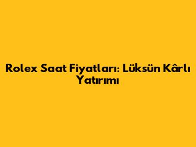 Rolex Saat Fiyatları: Lüksün Kârlı Yatırımı