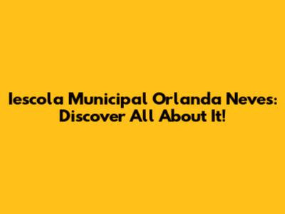 Iescola Municipal Orlanda Neves: Discover All About It!