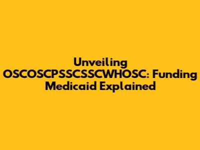 Unveiling OSCOSCPSSCSSCWHOSC: Funding Medicaid Explained