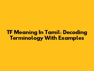 TF Meaning In Tamil: Decoding Terminology With Examples