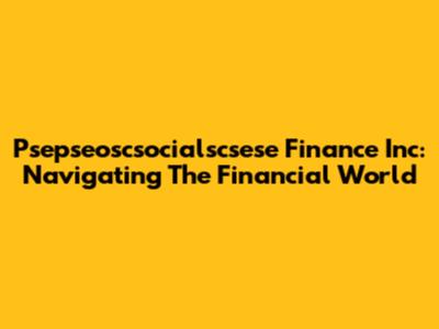 Psepseoscsocialscsese Finance Inc: Navigating The Financial World