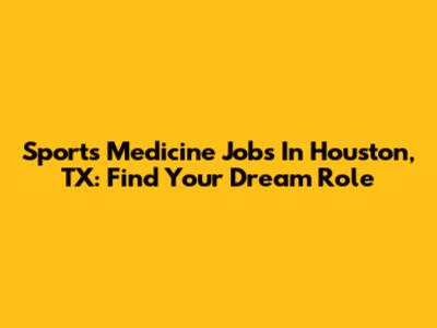 Sports Medicine Jobs In Houston, TX: Find Your Dream Role