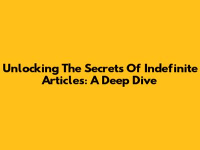 Unlocking The Secrets Of Indefinite Articles: A Deep Dive