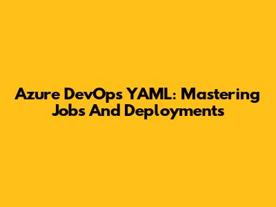 Azure DevOps YAML: Mastering Jobs And Deployments