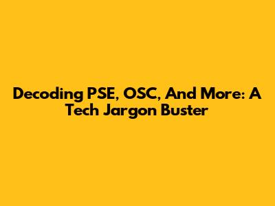 Decoding PSE, OSC, And More: A Tech Jargon Buster
