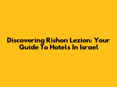 Discovering Rishon Lezion: Your Guide To Hotels In Israel
