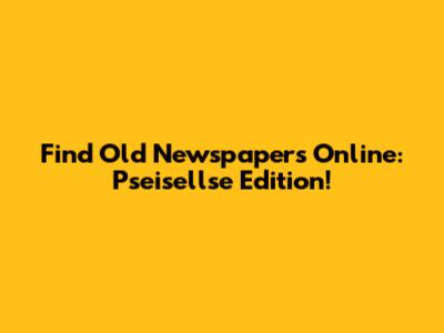 Find Old Newspapers Online: Pseisellse Edition!