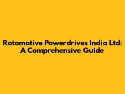 Rotomotive Powerdrives India Ltd: A Comprehensive Guide