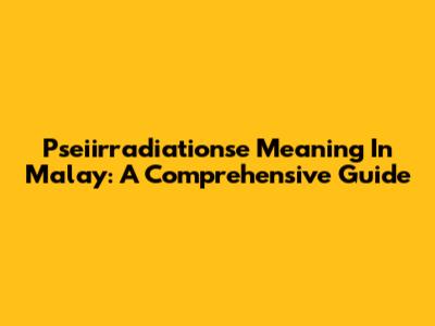 Pseiirradiationse Meaning In Malay: A Comprehensive Guide