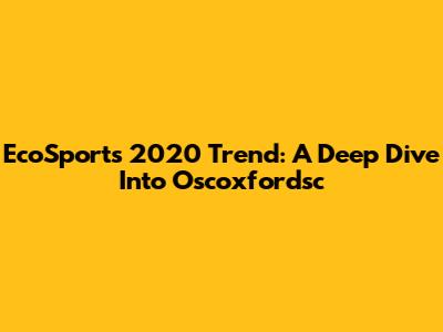 EcoSport's 2020 Trend: A Deep Dive Into Oscoxfordsc