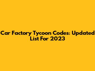 Car Factory Tycoon Codes: Updated List For 2023