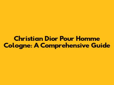 Christian Dior Pour Homme Cologne: A Comprehensive Guide