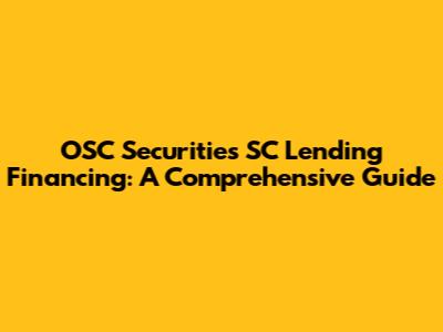 OSC Securities SC Lending Financing: A Comprehensive Guide
