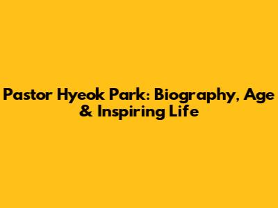 Pastor Hyeok Park: Biography, Age & Inspiring Life