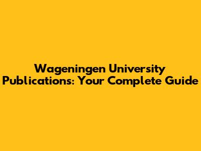Wageningen University Publications: Your Complete Guide