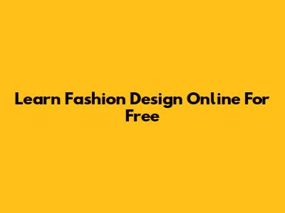 Learn Fashion Design Online For Free
