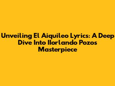 Unveiling 'El Aiquileo' Lyrics: A Deep Dive Into IIorlando Pozo's Masterpiece