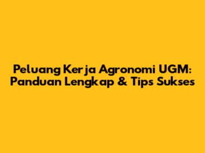 Peluang Kerja Agronomi UGM: Panduan Lengkap & Tips Sukses