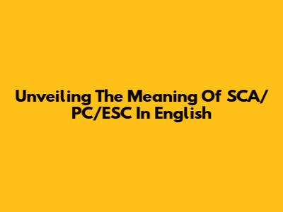 Unveiling The Meaning Of SCA/PC/ESC In English