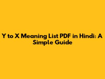 Y To X Meaning List PDF In Hindi: A Simple Guide